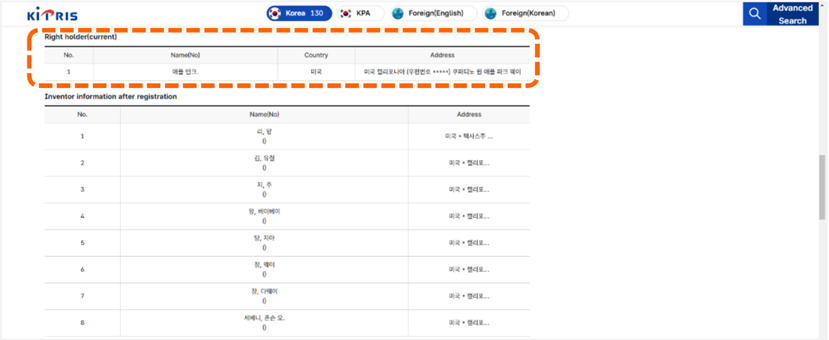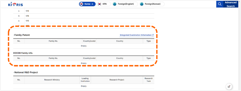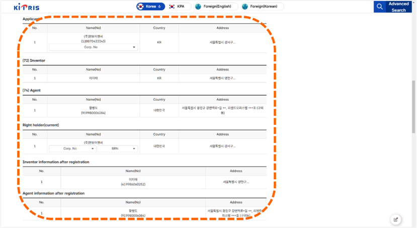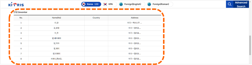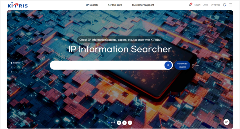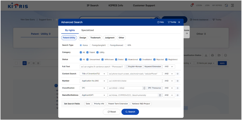 從韓國檢索系統KIPRIS首頁點選「Advanced Search」,進入檢索頁面 [如圖7-52]。