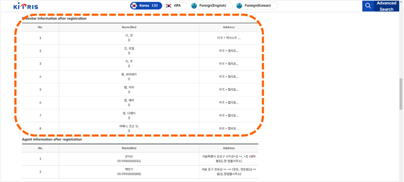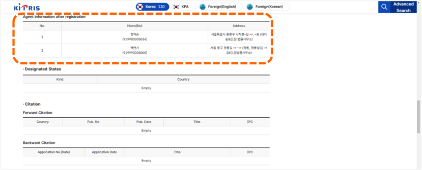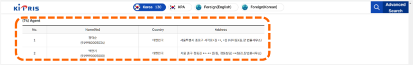 下拉視窗到Inventor/Agent information after registration欄位時,會分別列出發明人資訊以及代理人資訊[如圖7-57]。